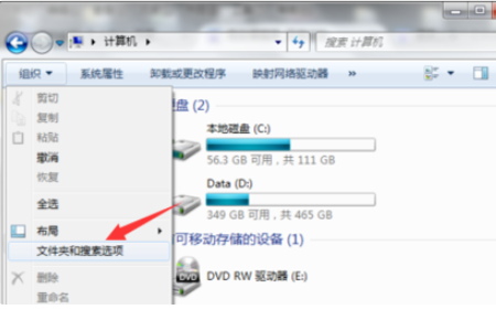 1、首先电脑桌面上的计算机选项打开,说到计算机见面之后,点击左侧的文件夹和搜索选项。