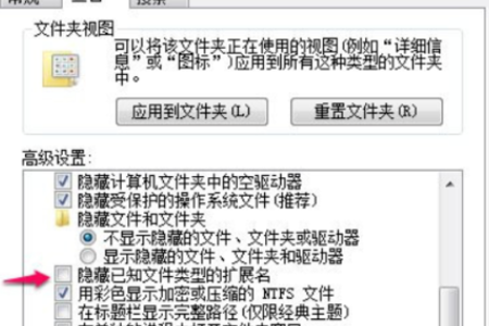2、在弹出来的窗口里面切换到安全界面,并在此界面找到隐藏已知文件类型的扩展名,这个选项前面的勾去掉。