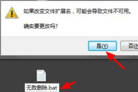 4、然后在这个新建的空白文档里面输入一些内容,并在保存的时候将保存类型为.bat格式,点击是。