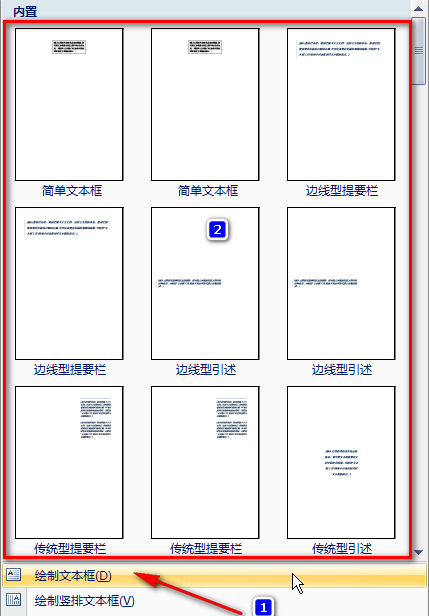 2、在正文的格式中选择一种插入,或者点击最下方的“绘制文本框/绘制竖排文本框”。