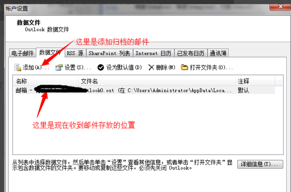怎么样查看outlook邮件存放的位置和添加文件