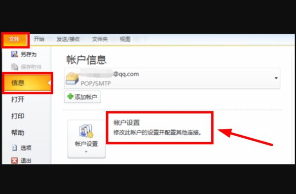 以outlook2010为例,查看现有帐号邮件服务器的具体操作步骤如下: