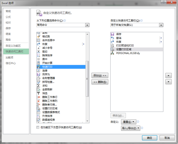 1、点击“文件”----选项----快速访问工具栏----快速打印----添加----确定。