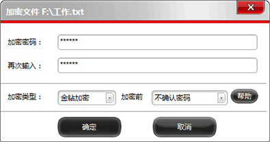2. 然后在弹出的文件加密窗口中设置文件加密密码,并选择加密类型,然后点击“确定”就可以了。
