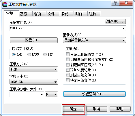 4、回到【常规】在点击【确认】,文件就开始了加密压缩的过程。