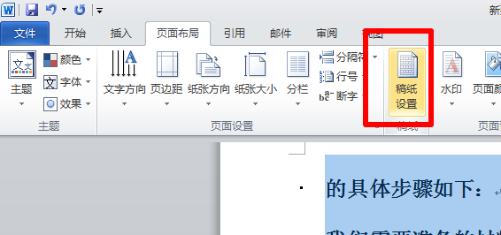 1、单击页面布局---->稿纸设置,如图所示;