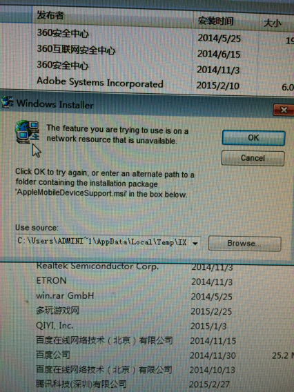 开始-控制面板-程序和功能-找到你卸载的(apple mobile device support)点击鼠标右键出现,卸载-更改和修复,不要直接点击卸载不然又的回滚了,点击更改,然后出现Remove 点击它 然后点击yes,然后点击ignore看行不行,的,如果它还是回滚的话,那就先点击修复然后再点击更改,希望能帮到你,