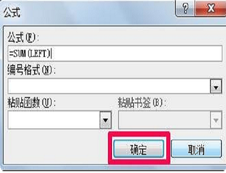 3、公式中出现公式“= SUM(LEFT)”,这意味着对左侧的单位求和,然后单击“确定”。