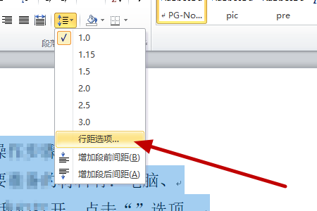 2、然后我们在该页面中点击“行距选项”选项,。