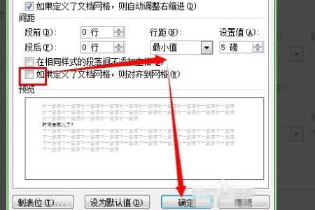 3、之后我们在该页面中勾掉“如果定义了文档网络”然后在选择最小行距值,如5磅,然后点击“确定”选项即可。