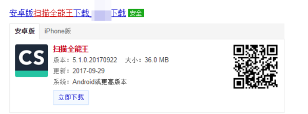 1、在网上搜索下载“扫描全能王”软件,下载并按照要求安装该手机软件;