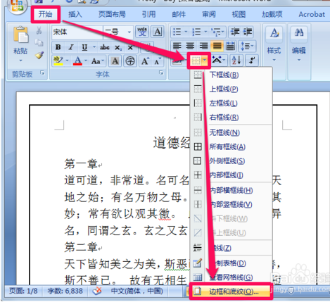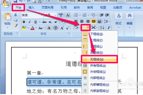 以word2007为例介绍取消word页面边框和word文字边框的方法和步骤