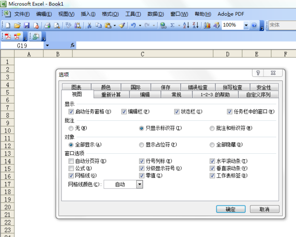 点击工具--选项,把网格线勾去