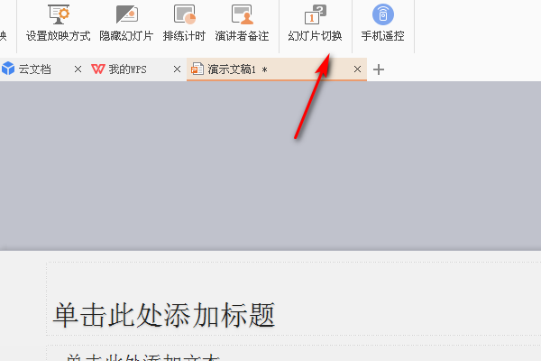 3.接着在下一栏中找到幻灯片切换,并点击此选项。
