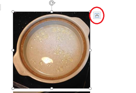 2、在图片上点击,选中图片。右上角出现设置图标。