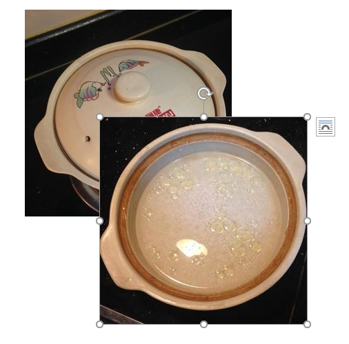5、可以看到下面一张,图片上移在第一张图片下。点选第一张图片,拖到一旁。