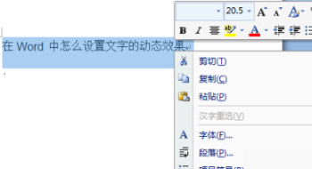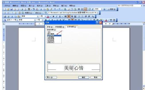 2.在【字体】的对话框中切换到【文字效果】,在动态效果中选择一种动态,点击【确定】后,即可看到添加的动态效果。