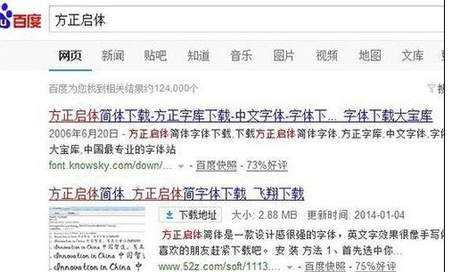 步骤一:首先打开百度网页搜索想要的字体,这里是下载方正启体