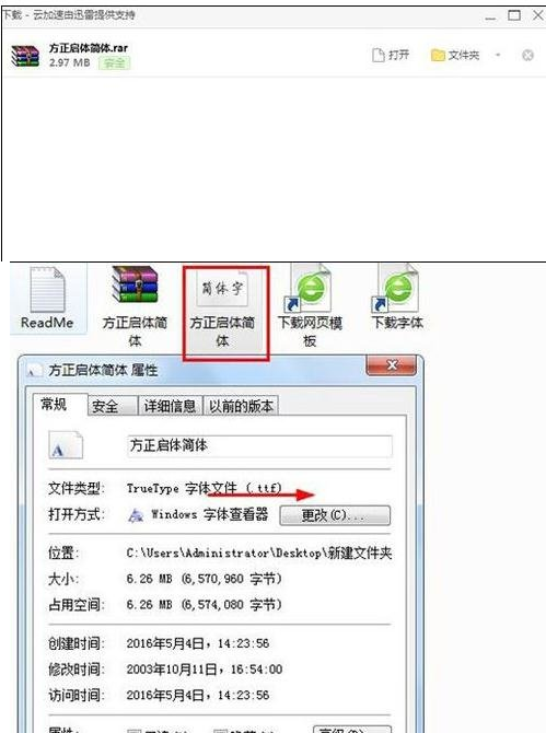 步骤二:下载后,解压缩字体包,复制其中扩展名为ttf的字体文件