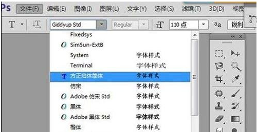 步骤六:该方法安装的字体,不仅适用于word,同时也适用于操作系统软件的,例如打开photoshop也能找到改字体