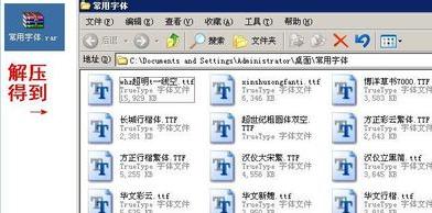 1、将需要安装的字体解压(一般下载后都是压缩包,必须解压后方能使用),会得到扩展名为ttf的字体文件。