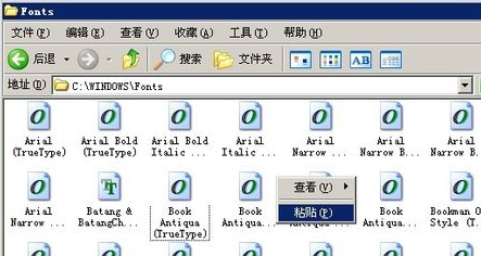 我的推荐安装方法:把你下载的所有字体,放到除C盘外的一个文件夹。然后找到“开始--程序--控制面板--字体”,点“文件--安装新字体”----如图!!这样你做了系统后,还重复这个方法也可以。并且节省C盘空间。