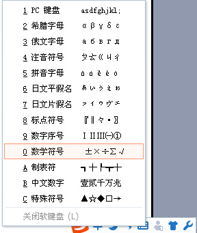 1、在搜狗输入法上软键盘上单击右键,弹出快捷菜单,选择数学符号,如图所示;