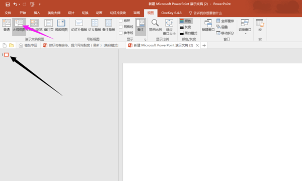 2、打开PPT,点击工具栏上“视图”选项下的“大纲视图”。