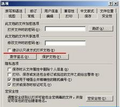 首先打开需要加密的Word文档,选择“工具”菜单中的“选项”命令,在弹出的“选项”对话框中选择“保存”标签,分别在“打开权限密码”和“修改权限密码”框中输入密码,然后点击“确定”按钮退出,最后将该文档保存即可。注意:“打开权限密码”和“修改权限密码 ”可以相同也可以不同,设置“打开权限密码”是为了防止别人打开该文档,而设置“修改权限密码”是为了防止别人修改该文档,如果只设置“修改权限密码”,那么别人仍然可以打开该文档,但是如果不知道密码的话,并不能做任何修改。