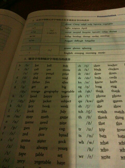字母c和g有硬音和软音的区别:c cap 帽子 count 数 car 汽车 coffee 咖啡 cat 猫 cow 母牛 cake 蛋糕 cup 杯子