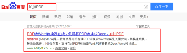 1、直接在百度搜索 加加PDF,如下图所示,点击红色方框中的链接。