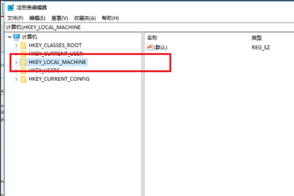2、弹出新窗口,点击”HKEY_LOCAL_MACHINE“。