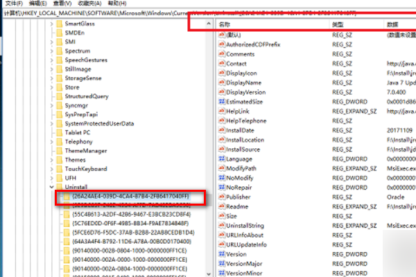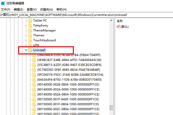 4、点击”Uninstal“下方的文件夹,右侧出现该项所有名称、类型、数据等信息。