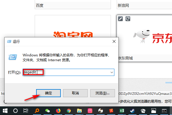 1、首先,在电脑桌面,按下win+R键,在运行输入框中输入regedit,点击”确定“。