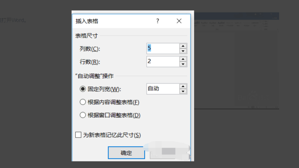 单击后出现插入表格选框,根据自己需要输入行数、列数及宽度。