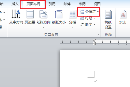 2、然后点击工具栏中的页面布局,再点击分隔符。