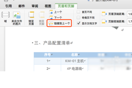 5、然后取消勾选页眉页脚中”链接到上一个“。