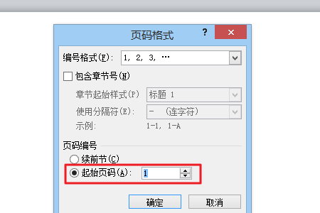 7、然后在弹出的对话框中选择起始页码为1,点击确定,即将刚刚正文第一页下的页码改为1了。