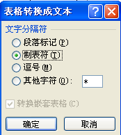3、弹出表格转换成文本对话框,单击确定按钮即可,如图所示。
