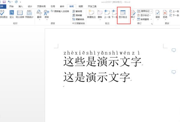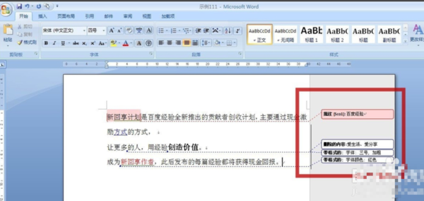 7、得到下图所示的,最终显示状态至于文档中有的批注。