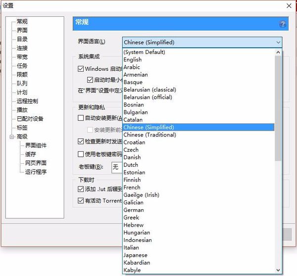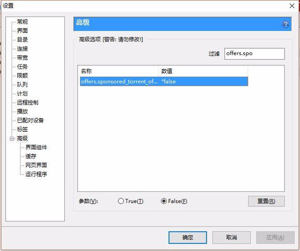 打开uTorrent ,选项->设置->高级(可以用过滤)