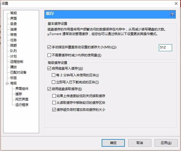 勾选”手动指定缓存大小以覆盖自动设置的缓存大小(MB)“