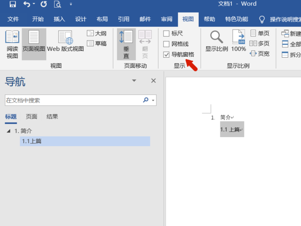 5、将鼠标移动到上方菜单栏中的视图窗口,找到下方的导航窗格工具并勾选可以看到,在左侧导航窗口中已经显示导航标题链接了,点击即可导航到指定位置。