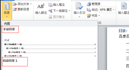 3.设置好标题之前,插入目录,一般有手动和自动两种,最好选择自动,选择好之后,在第一页的最上方就会出现已经设置好的目录。