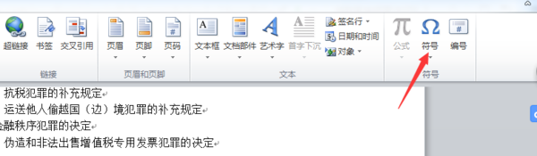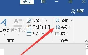 2、在打开的Word插入功能区,我们找到并点击“符号”图标。
