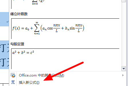 1、打开word2010,点击公式符号按钮,选择“插入新公式”,如图: