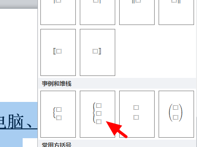 3、然后我们在弹出来的窗口中点击打开“括号”,选择大括号即可。