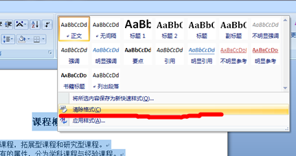 3.在出现的下拉菜单选项中,我们选择“清除格式”即可完成全文的格式清除。