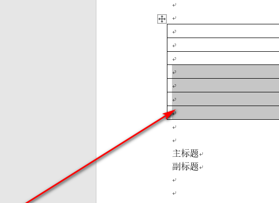 3、使用鼠标拖拽的方式选中下一行/下几行表格,并剪切。