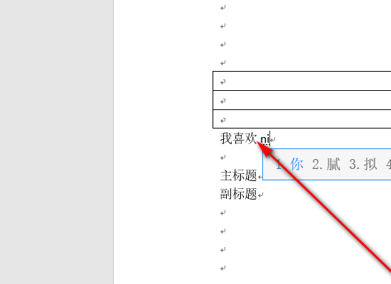 4、在第一行表格的下方输入需要输入的文字,随后回车。